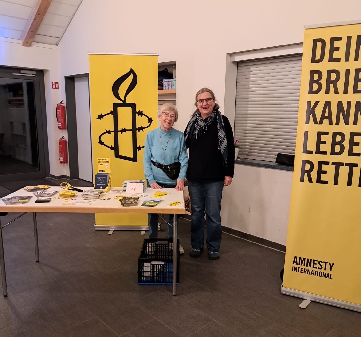 Amnesty war mit einem Stand vertreten und bot am Freitagvormittag umfassende